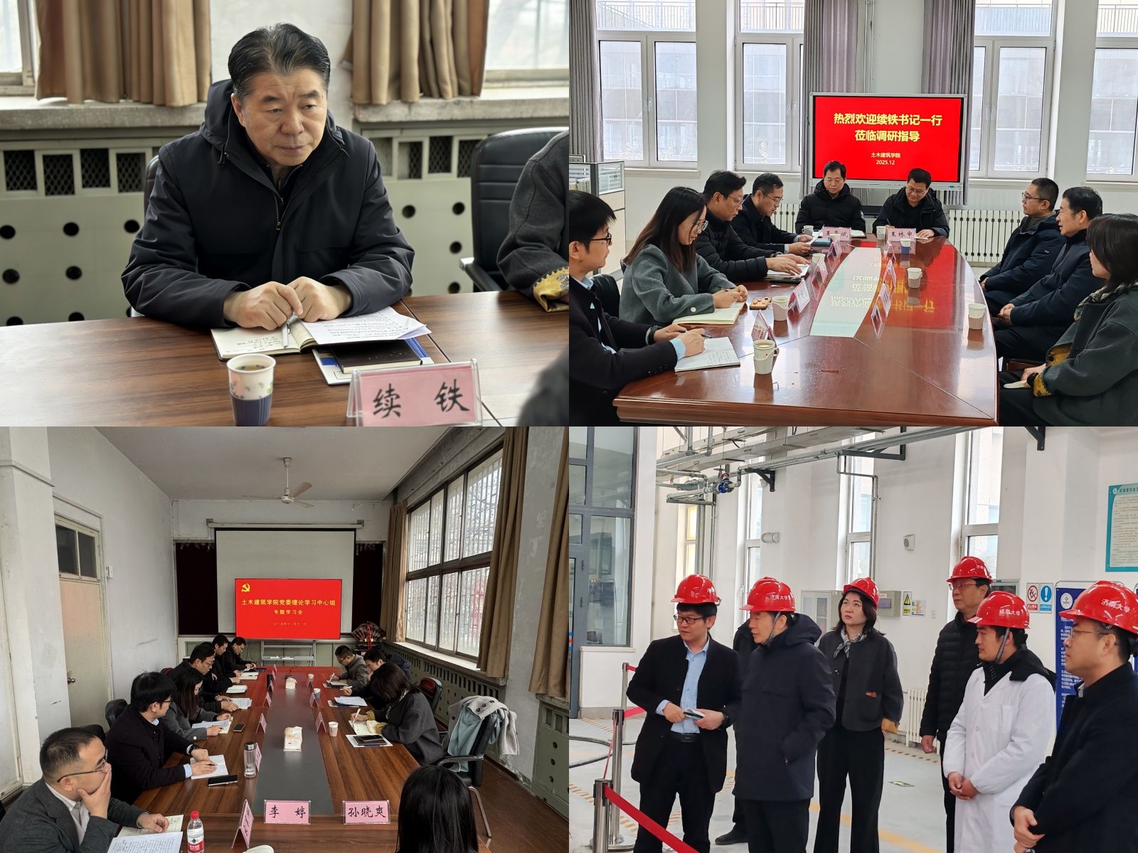 在随后的调研中,续铁一行参观了土木工程综合实验楼,李超代表学院党委汇报了学院落实全面从严治党主体责任、推进党风廉政建设的具体情况;院长谢群汇报了2025年度学院特色亮点工作和2026年度工作要点。