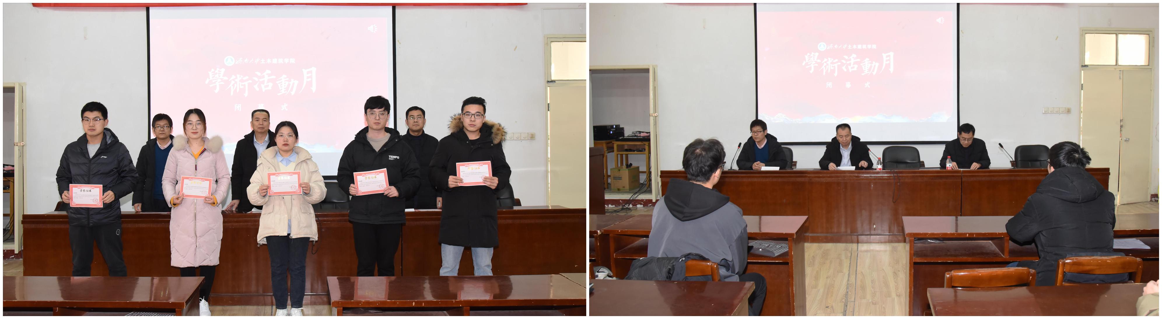 12月30日,土木建筑学院第八届研究生学术活动月闭幕式暨优秀学术论文颁奖典礼在土木建筑学院学术报告厅举行,学院相关负责人及师生代表参加闭幕式。