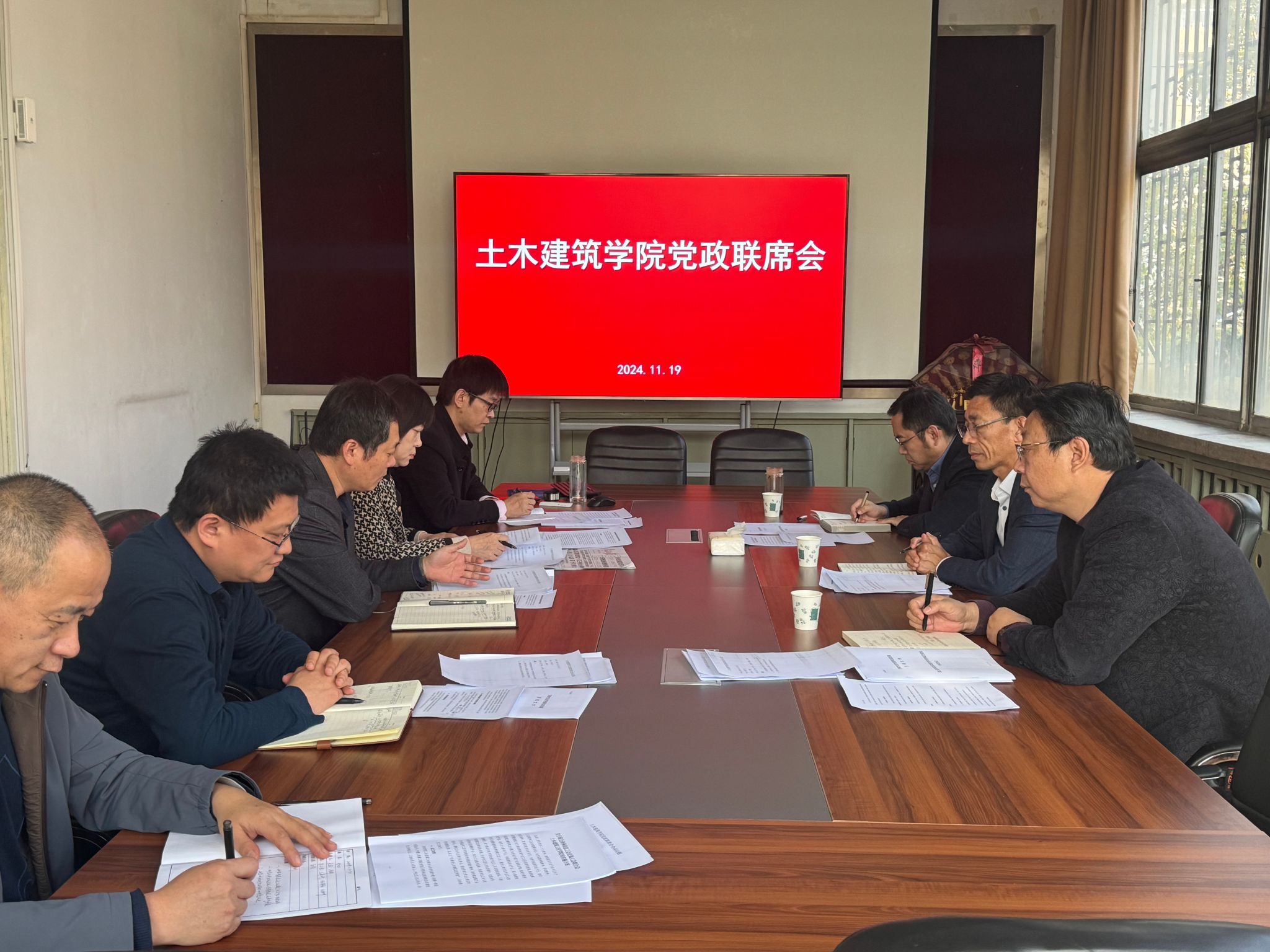 在党政联席会上,学院班子成员分别就智慧建造与运维产业学院拓展合作单位、城乡规划专业评估的问题改进办法、土木建筑工匠学院建设具体事宜等工作进行了讨论。