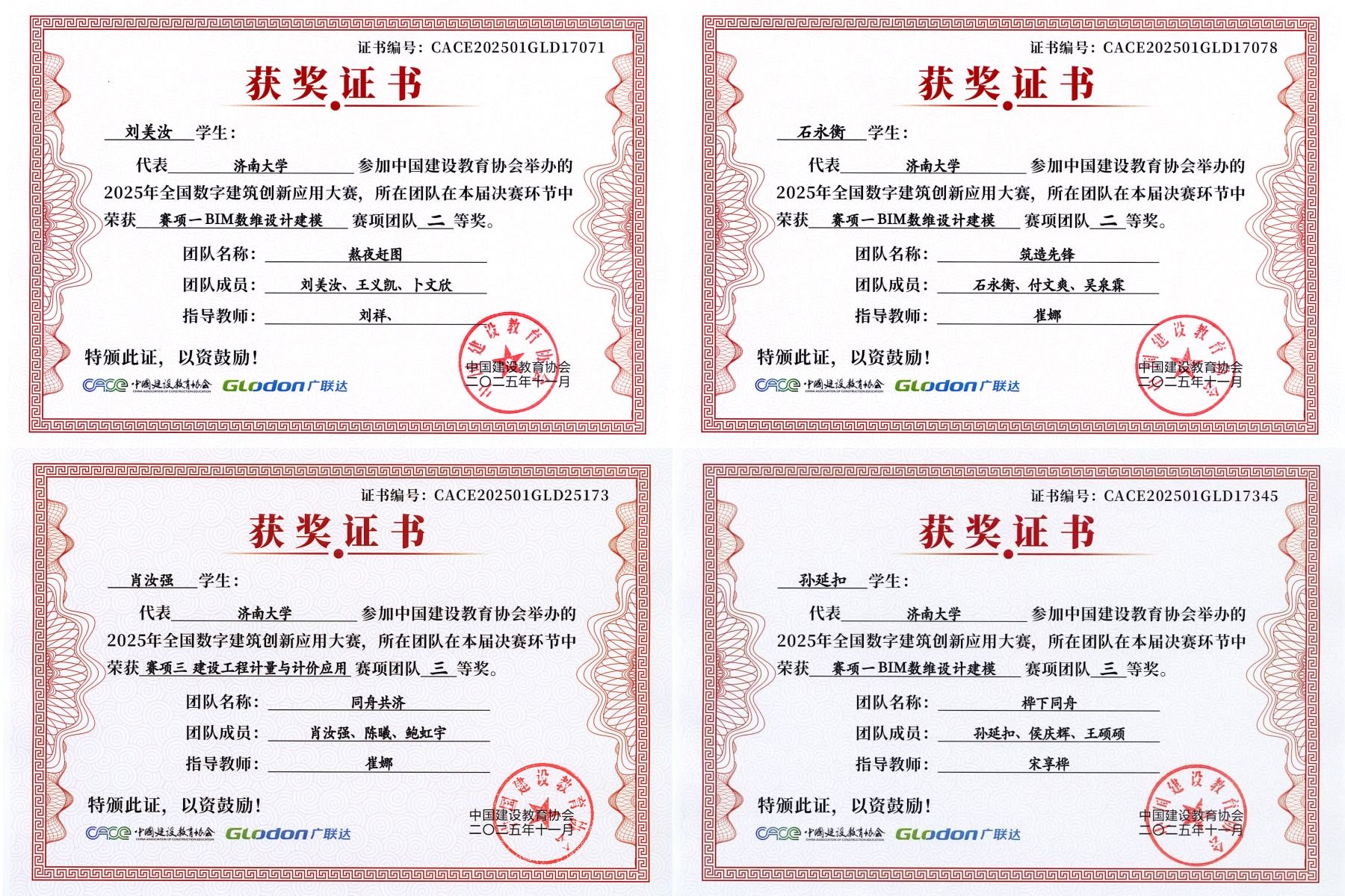 近日,2025年全国数字建筑创新应用大赛落下帷幕,我院在“BIM数维设计建模”和“建筑工程计量与计价应用”两个赛项中荣获2项国家级二等奖,3项国家级三等奖。