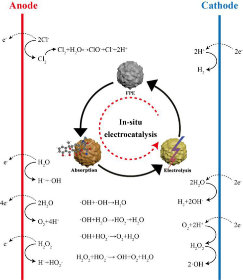 针对传统污水处理厂难以有效去除污水中稳定性抗生素问题,杨舒敏在冯岩教授指导下,以污水中典型抗生素-四环素(TC)为研究对象,以浮选尾矿为主材料,采用浸渍-焙烧工艺,可控制备了新型颗粒电极,即浮选尾矿颗粒电极(FPE),利用SEM,XRD,FT-IR和XRF对FPE的理化性质进行了系统表征,探讨了四环素在FPE上的吸附及其吸附机理。构建了电催化、FPE原位再生的三维电催化曝气反应体系,考察了影响四环素降解效率和能耗的关键参数,例如电流密度、电解时间、初始浓度、初始pH和曝气速率。进行了动力学分析、活性成分分析、中间产物检测,阐明了四环素的降解机理,揭示了三维电催化曝气反应体系中电催化、FPE原位再生的协同作用机制。研究得知,三维电催化曝气反应体系可以高效、低成本去除废水中抗生素,实现吸附剂的原位再生,该研究发现将在废水深度处理领域具有广泛的应用前景。