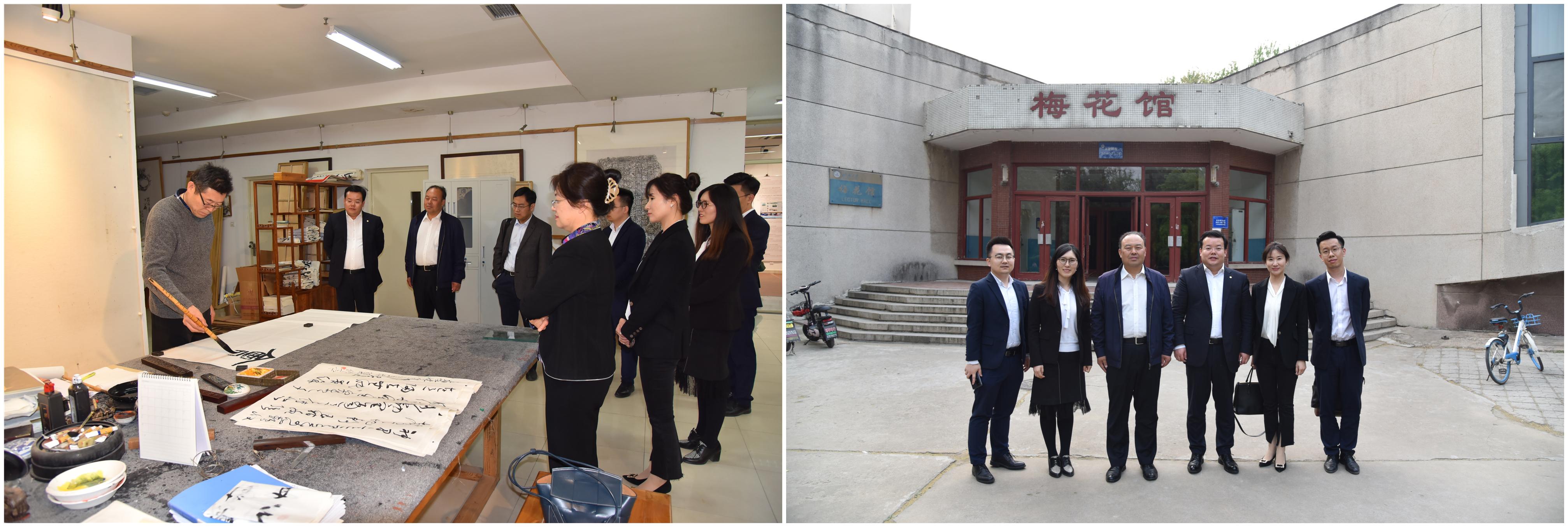 会后,栾志强书记陪同惠乐怡总经理一行参观了济南大学舜道艺术馆,于剑波老师亲自为惠乐怡总经理等人现场书写并赠送了书法作品。随后一行人参观了土木工程综合实验楼、教学楼,深入了解了学院的综合办学实力。在土木建筑学院参观了正在举办的大学生结构设计大赛以及党建活动室等,栾志强书记向惠乐怡总经理介绍了土木建筑学院“以本为本,教学科研并举”的发展战略,他希望土木建筑学院与中建八局建立长期合作伙伴关系,共同培养优秀人才,并诚挚邀请中建八局来我院招贤纳士。最后栾志强书记陪同惠乐怡总经理一行人走访重温了中建八局党委书记、董事长李永明在校期间学习生活的场景——梅花馆、松竹园等地,深刻感受了济南大学70多年的历史底蕴与人文气息。