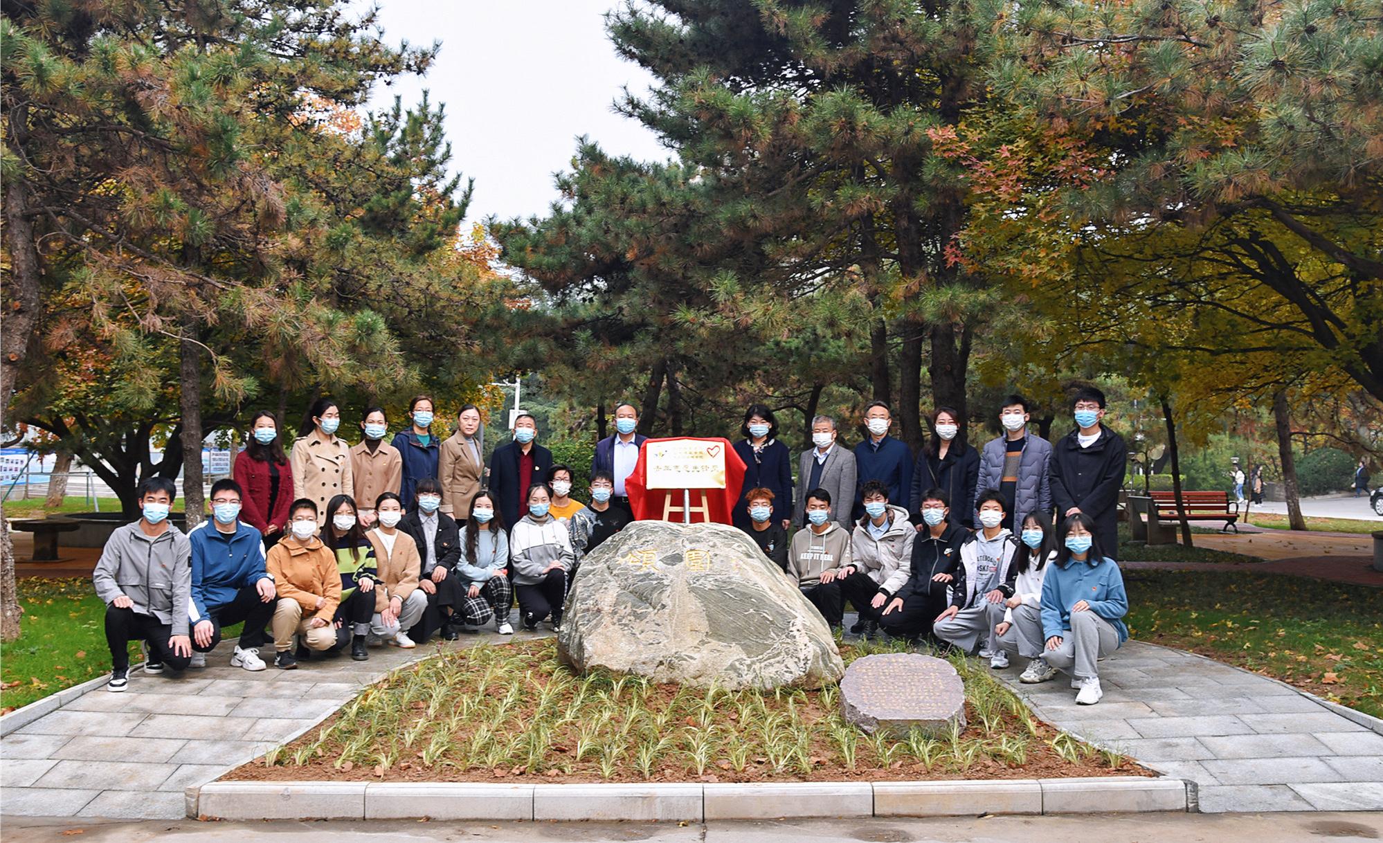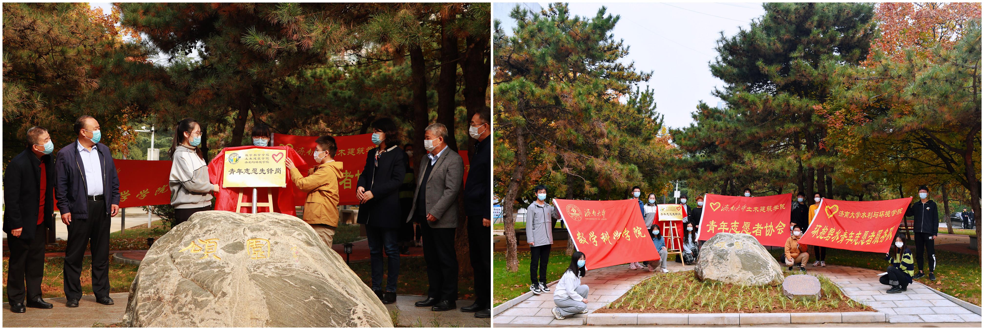 在各位领导老师的见证下,三个学院青年志愿者代表一起亲自为“青年志愿先锋岗”揭牌。