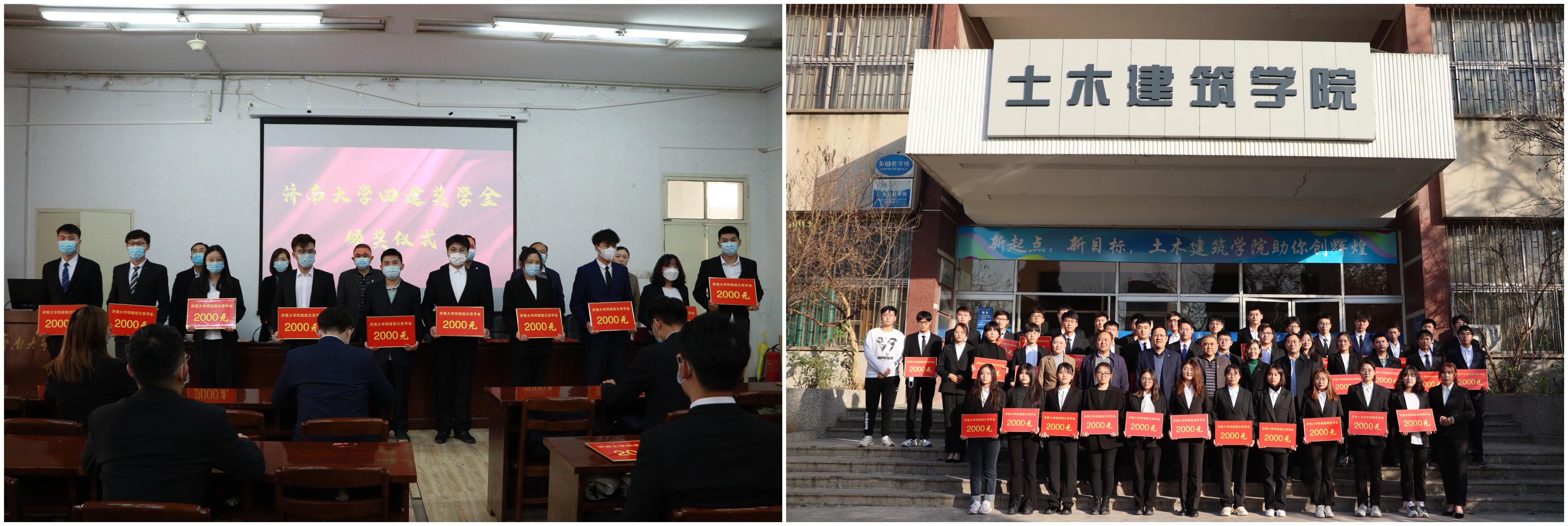 济南四建奖学金是由济南四建(集团)有限责任公司每年捐资80000元人民币奖励,资助土木建筑学院40名不畏困难、发奋学习、品学兼优、全面发展的学生,其中设勤奋奖10名,励志奖30名,旨在鼓励在校学生发奋学习,自强自立。济南四建集团已与我校携手走过23年,先后资助600余名济大学子。济南四建奖学金的设立饱含了济南四建集团董事长、优秀校友曹晓岩先生和集团对我院学子的厚爱和期待,为学院教育事业提供了大力支持。