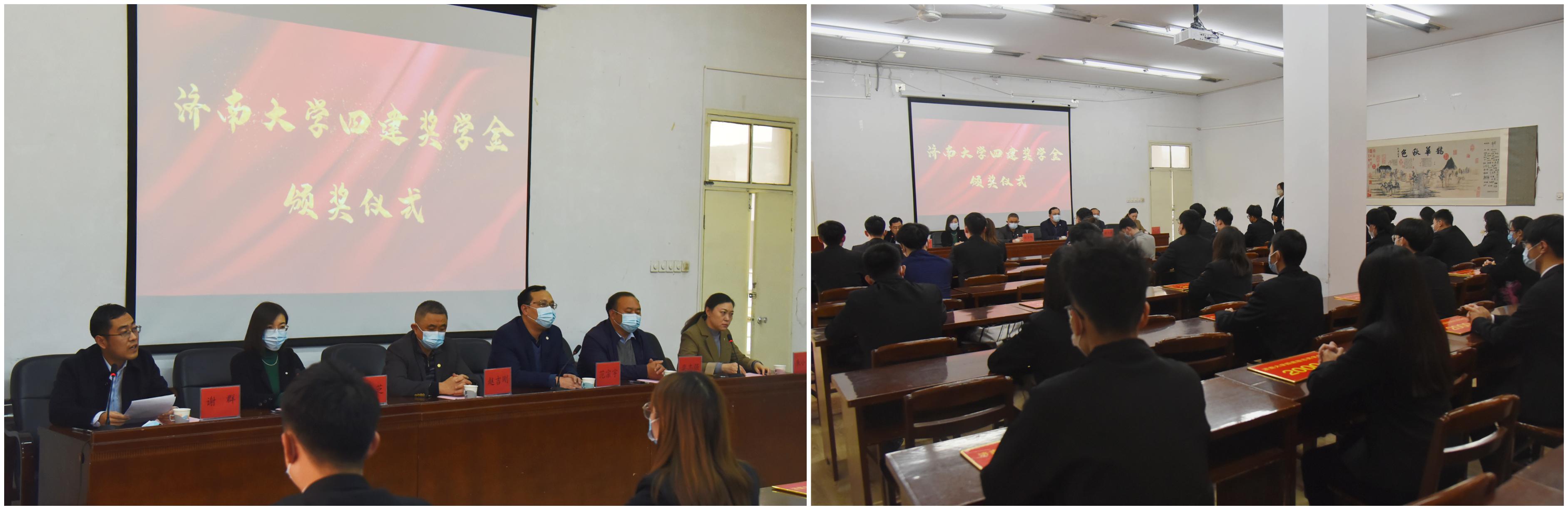11月24日,济南大学四建奖学金颁奖仪式在土木建筑学院举行。出席颁奖仪式的嘉宾有济南四建(集团)有限责任公司党委副书记、纪委书记赵吉刚,人力资源部部长范宗宇,学校党委学生工作部(处)副部(处)长刘芝,土木建筑学院党委书记栾志强,土木建筑学院院长谢群,会议由土木建筑学院党委副书记、副院长朱小燕主持。