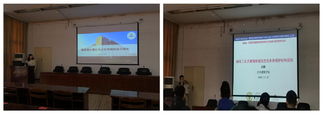 赵鹏老师就“曲阜三孔古建筑修缮技艺及其耐久性研究”做了主题学术报告。赵鹏老师在进行学术性报告的同时向在座同学分享了其对科研的态度,教导在座同学们,在现阶的学习和科研之中,“有经验赚经验,没有经验赚经历,脚踏实地,才能得到岁月的积淀,历久弥新”。接下来,14位研究生对各自的学术论文做了相应报告,在座同学畅所欲言,积极表达自己的看法与思想,气氛活跃。