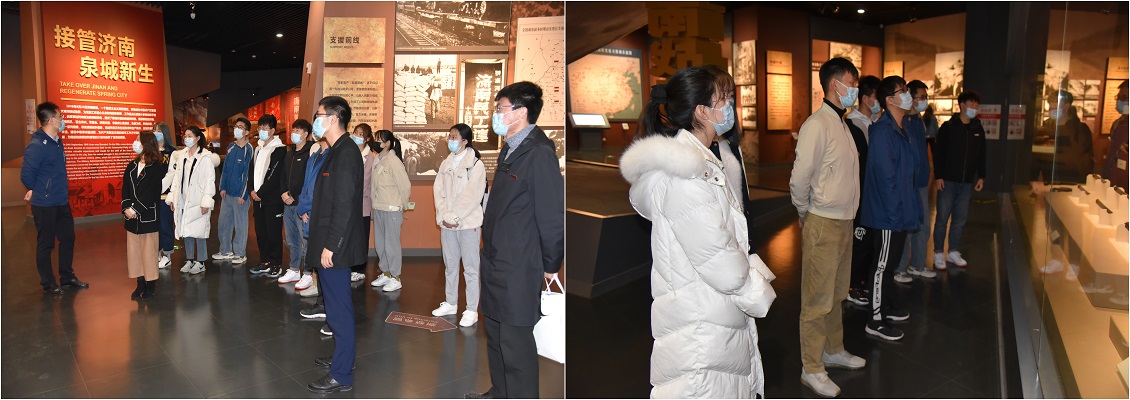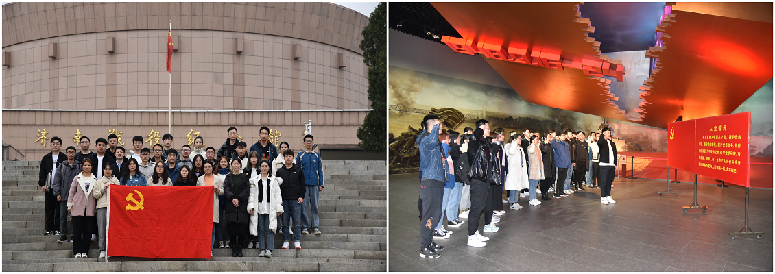 学生党支部书记带领30名新发展的党员集体参观了“和战博弈 生死较量”、“运筹帷幄 剑指济南”、“厉兵秣马 蓄势待发”、“八天八夜 鏖战古城”、“战略决战 凯歌行进”、“接管济南 泉城新生”、“英魂长眠 日月同辉”、“新时代 新泉城”8个展馆。通过参观学习,在场师生了解了“爱党爱军、依靠人民、英勇顽强、敢于胜利”的济南战役精神,身临其境感受了英雄先烈的英勇事迹。同学们在济南战役纪念馆边走、边听、边看,感受我们党的光辉历程、接受心灵的净化洗礼,深受感染和震撼。随后,在领誓人的带领下,同学们庄严宣誓,要以实际行动担当时代赋予的使命,不负重任。学生代表还接受了济南电视台的采访,活动最终圆满结束。