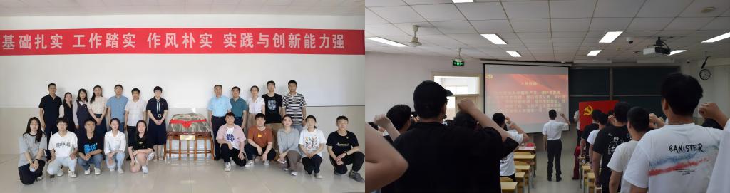 陈涛代表全院所有毕业生党员承诺在今后的学习与工作中,将加强党性修养,坚持廉洁自律;立足本职工作,发挥模范作用;铭记校风校训,发扬济大精神。