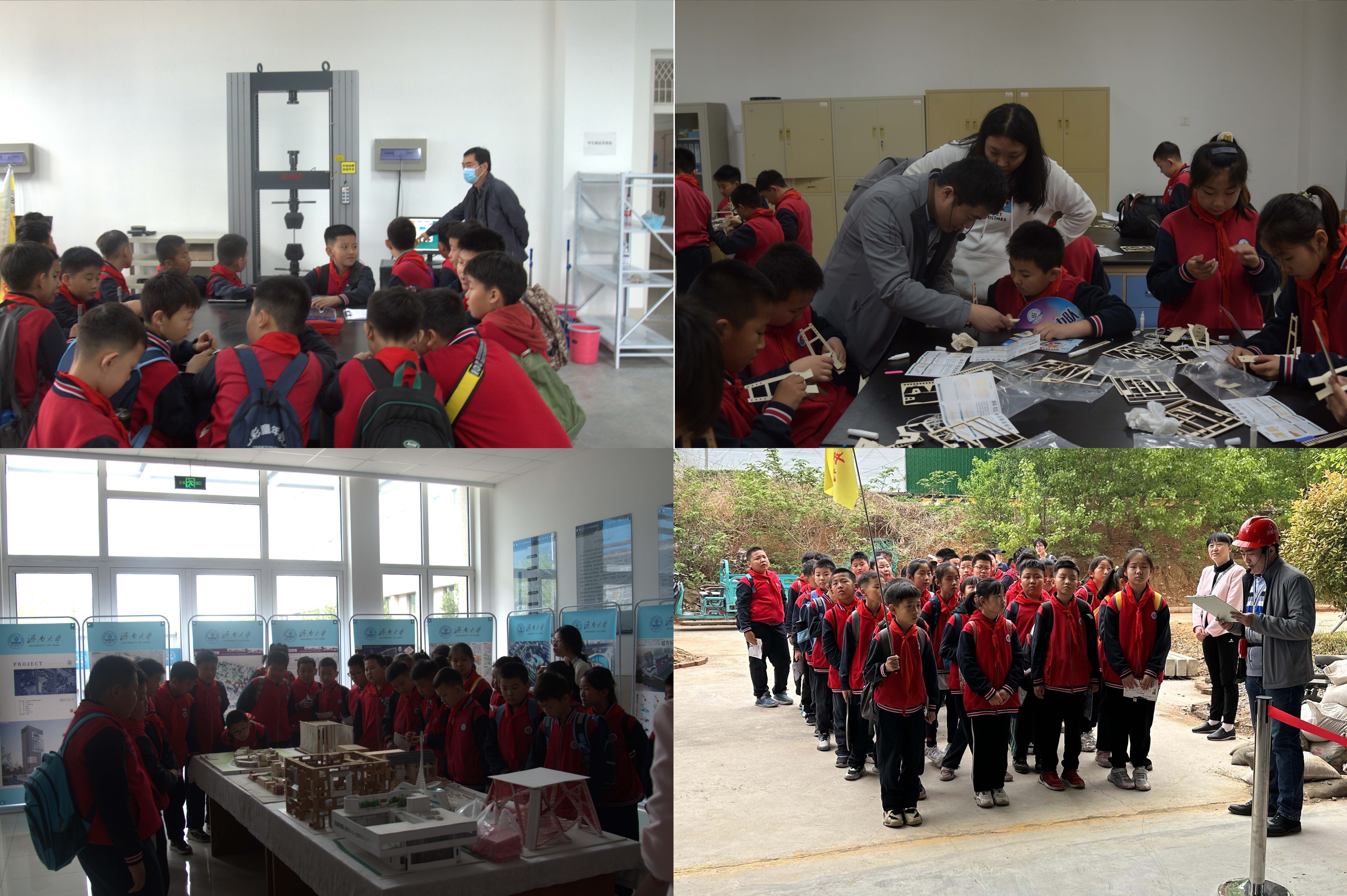 本次研学活动共分为两个阶段,第一阶段参观了结构工程实验室、力学实验室、岩土实验室、路桥模型实验室、生物实验室、水力学综合实验室等多个实验室,我院老师介绍了实验室情况,科普了相关专业知识,小学生们兴致勃勃,近距离参观了实验设备、建筑模型以及岩石矿物标本;为提高学生的动手能力,发挥学生的能动性,第二阶段以实验室现有设备条件为背景,开展了动手实操研学小实验,小学生们搭建了斜拉桥模型,认识了矿物与岩石。