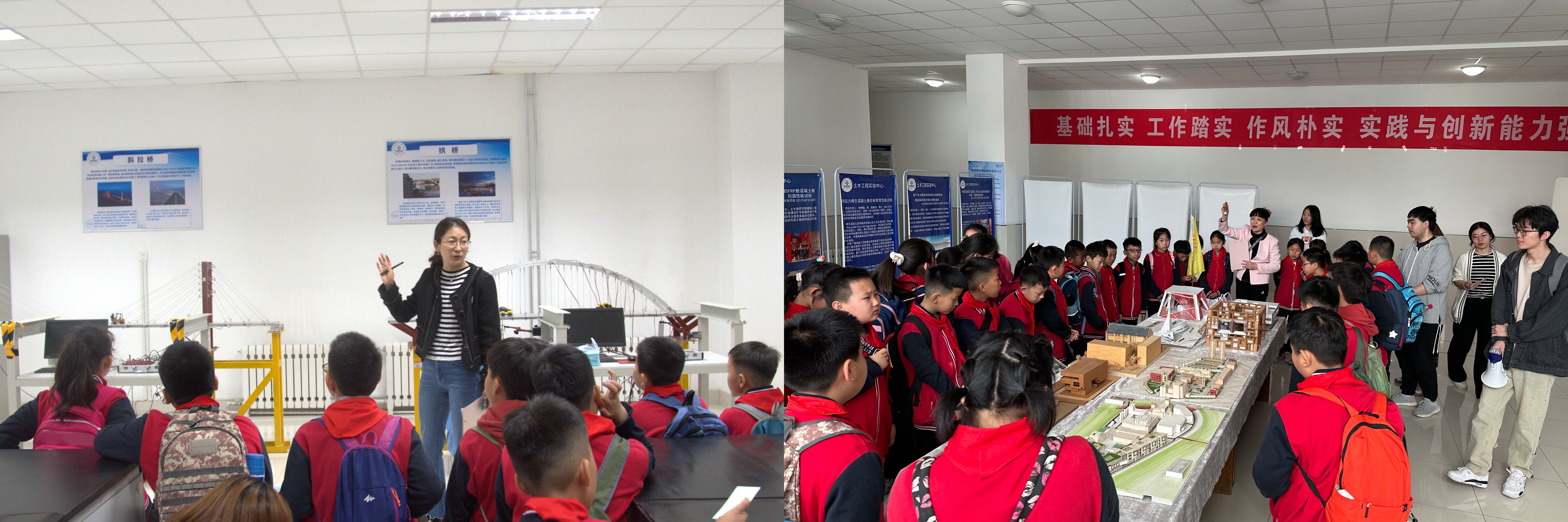 为贯彻落实党的十九大、二十大精神,深入学习贯彻习近平总书记系列重要讲话精神,秉承“创新、协调、绿色、开放、共享”的发展理念,落实立德树人根本任务,帮助中小学生了解国情、热爱祖国、开阔眼界、增长知识,着力提高他们的社会责任感、创新精神和实践能力,我院于414日开展了中小学生研学活动,活动期间开放土木工程综合实验楼,我院专业教师作科普讲解。