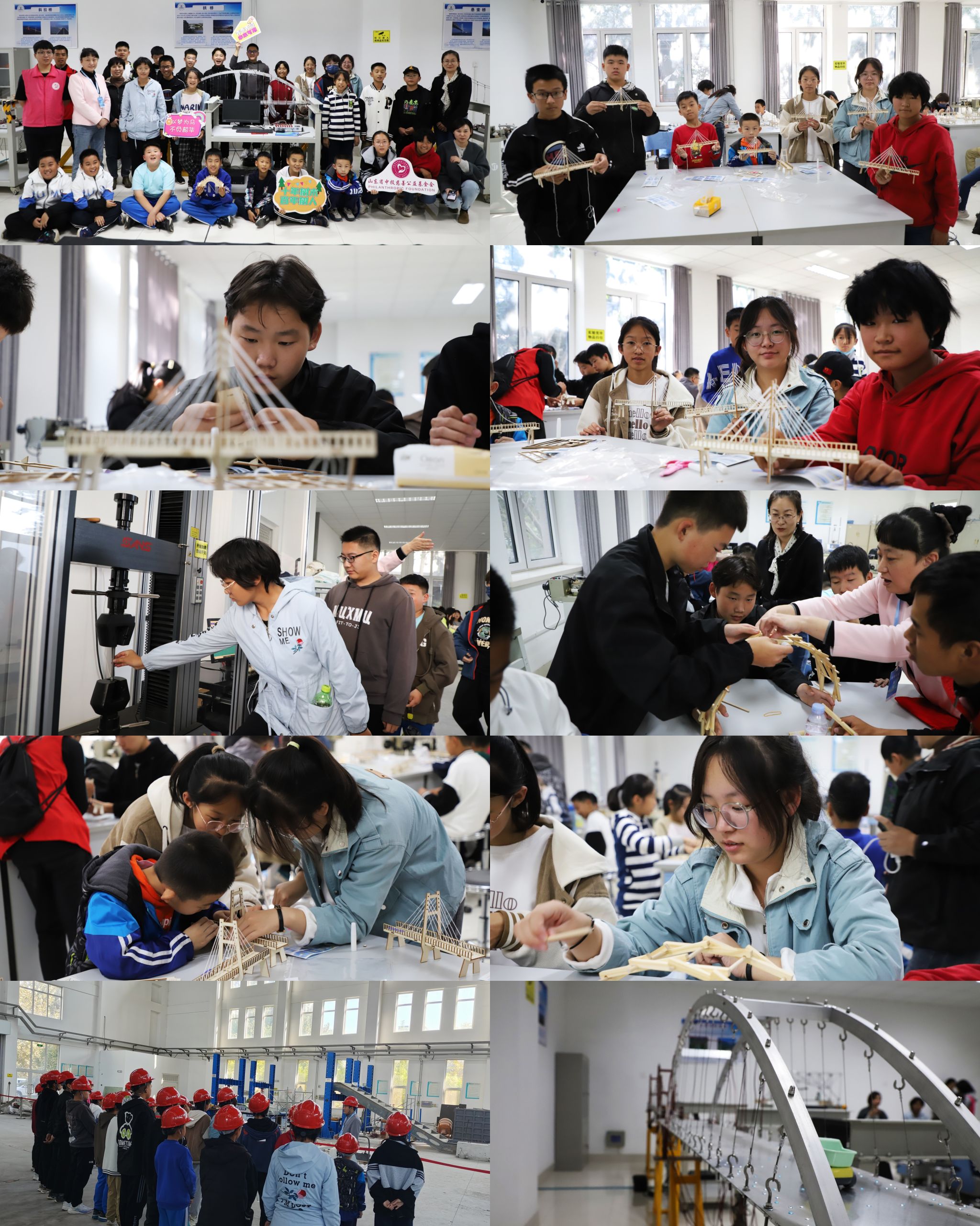 20231021日,土木建筑学院实验中心研学实践项目团队接待了由山东省中投慈善公益基金会主办,济南市市中区未成年人救助保护协会、美森教育共同支持的跨越古今的桥与梁,连结岁月的你和我树木工程第10期助力益百分训练营活动。来自济南、淄博、泰安等地的25名中小学生参加了活动。