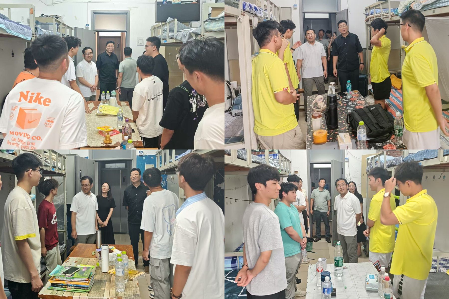走访期间,学院领导逐一走进各间新生宿舍,以“拉家常”的方式与同学们展开亲切交流。“老家是哪里的?”“对宿舍环境还习惯吗?”一句句贴心的问候迅速拉近了师生距离。领导们细致询问新生生源地、初入校园的体验与感受,叮嘱大家要特别注意宿舍用电安全、保持环境整洁,鼓励同学们主动熟悉校园食堂、图书馆、运动场等公共设施,积极参与班级和社团活动,尽快融入大学学习生活。