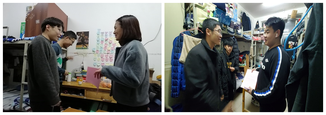 为进一步增强学院考研学子的动力和信心,了解学生学习生活情况,并传递学院的关怀和鼓励,12月1日晚,学院党委副书记、副院长朱小燕及辅导员老师到宿舍走访慰问考研学子。